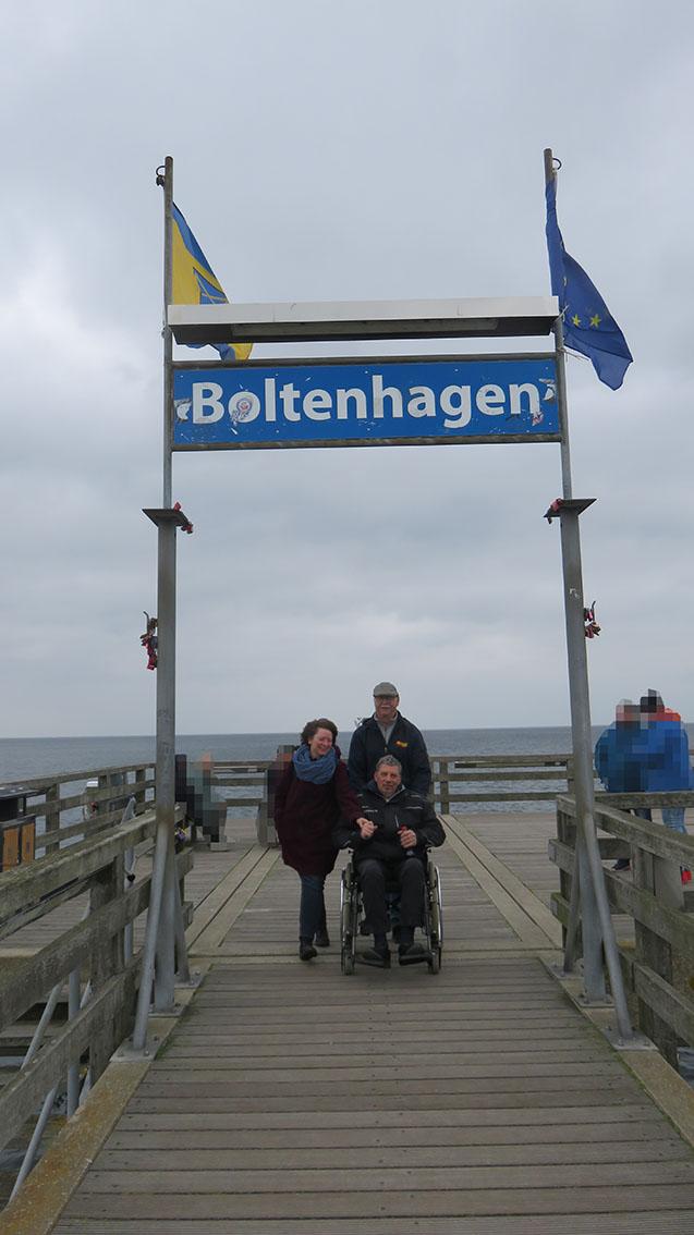 Freundlich wurden wir begrüßt von der Familie mit Kind und Hund. Erwartungsvoll waren die Augen unseres Fahrgastes Martin*. Er wünschte, noch einmal etwas Neues zu erleben und wollte mit seiner Frau nach Boltenhagen auf die Seebrücke. Der gebürtige Düsseldorfer lebt mit seiner Frau Sabine* seit acht Jahren in Norddeutschland und freute sich auf die Seeluft.