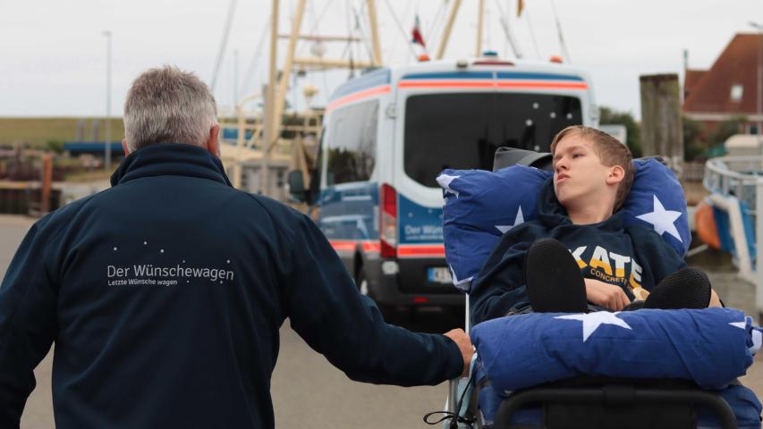 Am Büsumer Hafen angekommen, Türen des Wünschewagen weit auf ... Nordseeluft, Möwengeschrei, Schiffe, ... Trage raus, kleine Runde am Hafenbecken entlang. Sich ein bisschen Zeit nehmen um die Erinnerungen des Urlaubs sacken zu lassen, aufzunehmen.