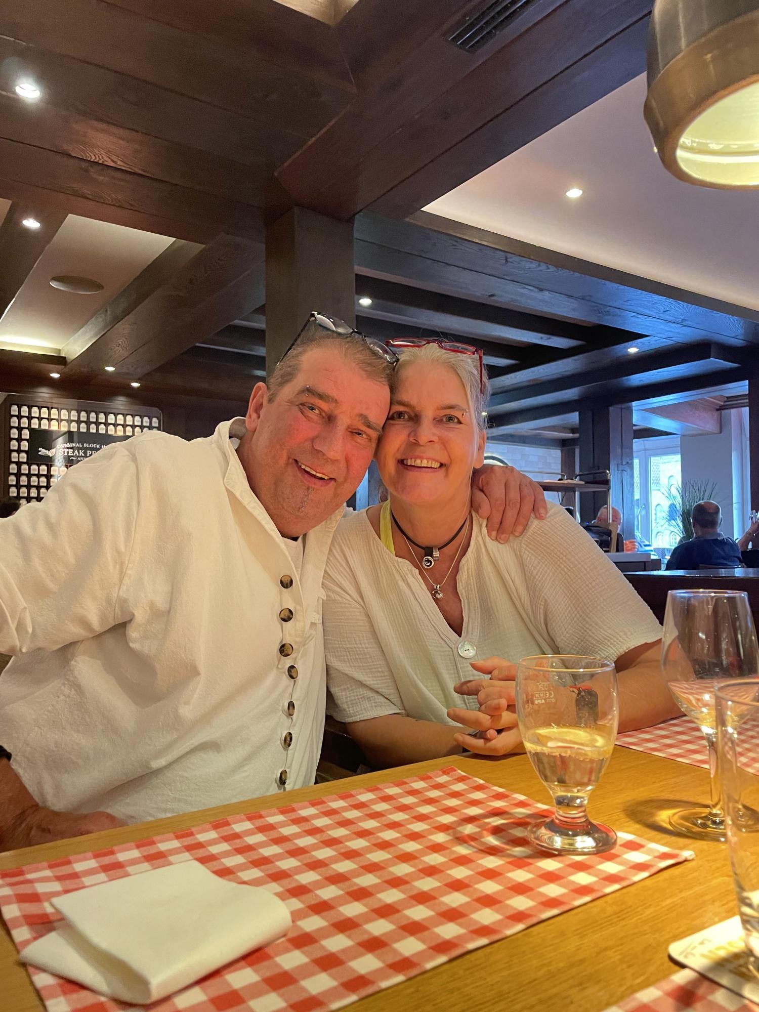 Mit leichter zeitlicher Verspätung haben wir Rigo und seine Frau Gaby am Pflegeheim in Ratzeburg begrüßen dürfen. Aufgeregt und voller Freude warteten sie bereits bei strahlendem Sonnenschein auf uns. Wir einigten uns auf ein unkompliziertes „Du“ und los ging die Reise. Rigo hat auf unserem bequemen Sitz im Auto Platz genommen, sein privater Rollstuhl wurde mitgenommen. Seine Frau Gaby saß ihm gegenüber, und die beiden zwinkerten sich zu. Die Stimmung war fröhlich, aufgeregt und voller Vorfreude auf den Nachmittag und Abend.
