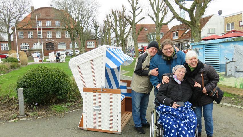 Einen Augenblick ausgeruht in einem Strandkorb auf der Promenade, ging es dann ans Wasser. Schön durchgelüftet bekam Frau P. Hunger, so gingen wir in einem Restaurant direkt am Strand essen. Sie genoss die Gesellschaft ihrer Familie. Trotz ihrer schweren Krankheit hat keiner den Humor verloren. Es wurde viel gelacht und Witze gemacht. An diesem Tag wurde der Krankheit ein Strich durch die Rechnung gemacht.