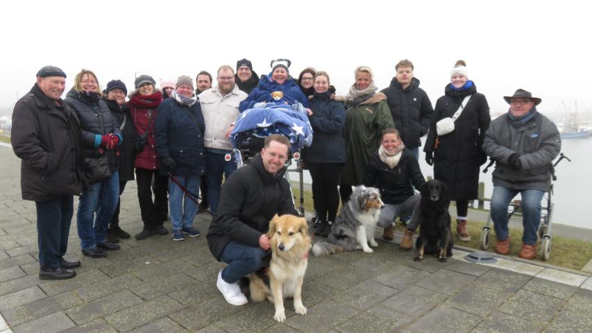 Im morgendlichen Nebel fuhren wir in einer kleinen Kolonne – der Wünschewagen vorneweg, dahinter die Familienautos – in Richtung Nordsee. Vera wurde von ihrer Tochter Swantje begleitet, und mit jeder Kilometer, den wir der Nordsee näher kamen, wuchs die Vorfreude. Bei der Ankunft warteten bereits Freunde, Hunde und noch mehr Verwandte, die Vera diesen Tag ebenso herbeigesehnt hatten.
