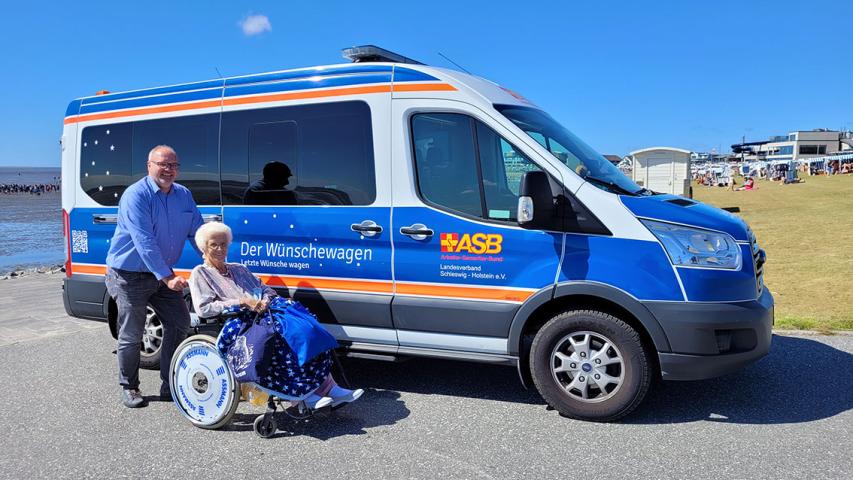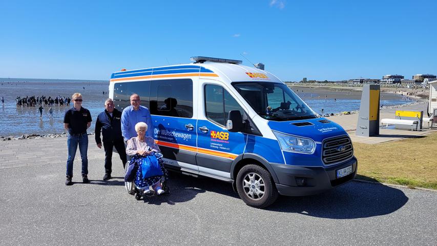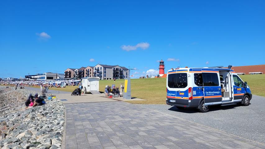 Schon viele Male durften wir das „Wünschewagen-Wunder“ selbst miterleben: Das Wetter passt sich stets den Anforderungen einer Wunschfahrt an. Auch heute begrüßte uns ein strahlend blauer Himmel, als wir gemeinsam mit Frau B. und ihrem Sohn mit dem Wünschewagen auf den Büsumer Ankerplatz rollten. Der größte Wunsch für diesen Tag: Noch einmal ein original Büsumer Krabbenbrötchen essen. Doch was war das? Auf dem gesamten Platz liefen die Vorbereitungen für das Büsumer Winzerfest am nächsten Tag und unsere üblichen Parkplätze waren bereits von Zelten besetzt.