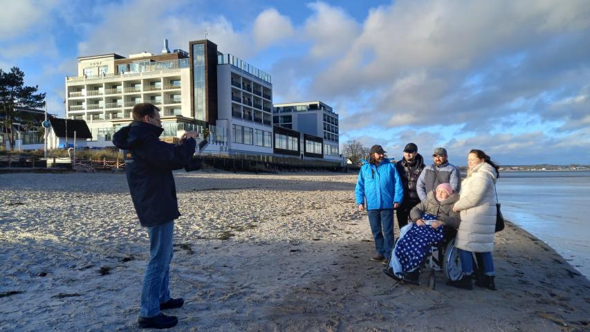 Anschließend ging’s zum Strand, wo sich unser Gast eine frische Meeresbrise abholte und in Erinnerungen schwelgte. Ein paar Minuten lang genoss sie die Ostsee ganz für sich allein – das war für sie persönlich das Highlight des Tages.