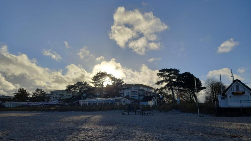 Zurück in Timmendorfer Strand war natürlich noch einmal der Strand das Ziel. Hier waren alle noch Muscheln suchen, und obwohl die Regenwahrscheinlichkeit an diesem Tag bei über 80 Prozent lag, hatten wir durchgehend gutes Wetter – das ist erstaunlicher Weise ganz oft bei Wunschfahrten so…