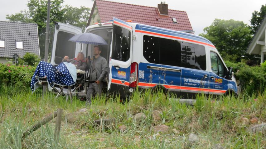 Mit dem Wünschewagen ging es vom Hospiz Kieler Förde zunächst nach Eckernförde, dort wollte der schwerkranke 69-Jährige ein bisschen spazieren gehen. Nächste Station war Strande, an der Strandpromenade entlang. Hier freute sich Herr B. auf seine Lieblingseisdiele.