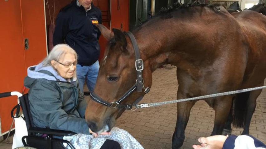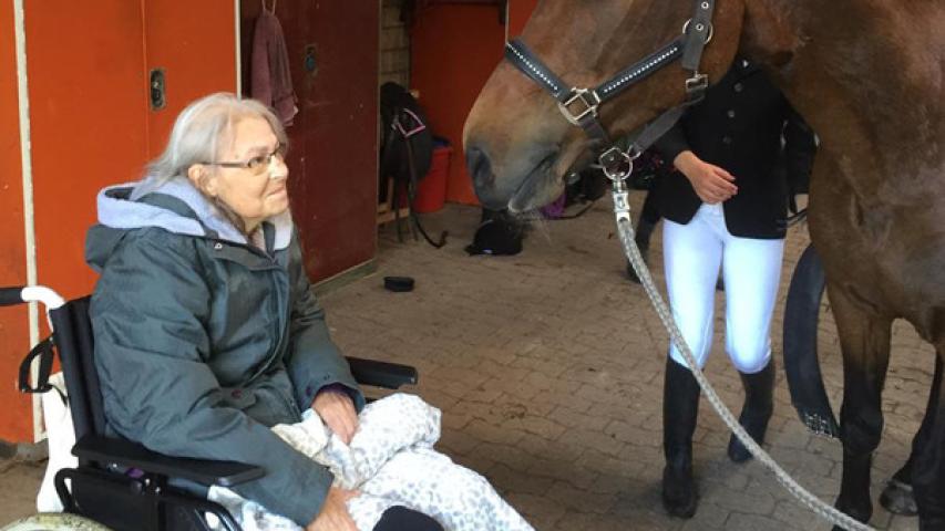 Charly ist die große Liebe von Frau J. „Groß“ im wahrsten Sinne des Wortes, denn es handelt sich um das Pferd der schwerkranken 65-Jährigen, das sie noch einmal streicheln und bei einem Turnier starten sehen wollte.