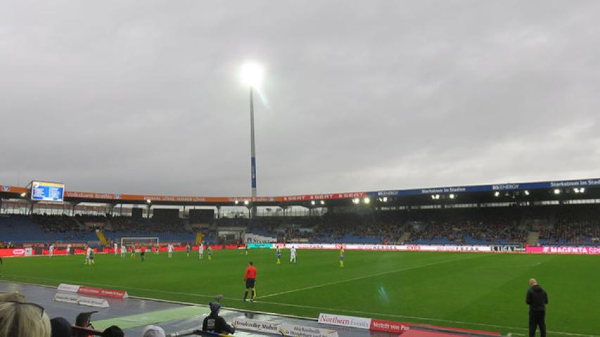 Christian, Freund und Organisator, stand mit einem Teil der Familie schon am Tor und hat uns erwartet. Der Parkplatz, auf den wir fahren sollten, hieß „Wahre Liebe“, und treffender kann man das, was wir in den nächsten Stunden miterleben durften, kaum beschreiben. Wir hatten phantastische Plätze, und auch, wenn ich bis zu diesem Zeitpunkt nicht mal wusste, dass der Verein existiert, war total klar, dass Braunschweig (an dieser Stelle meinen herzlichen Dank an Christian, der mich darauf hingewiesen hat, dass wir nicht in Osnabrück waren, wie ich ursprünglich geschrieben hatte…) die bessere Mannschaft ist. Deutlich besser. Hat sich leider nicht im Ergebnis gezeigt, aber wir waren uns alle einig, dass das am Schiri lag. Fußball verbindet.