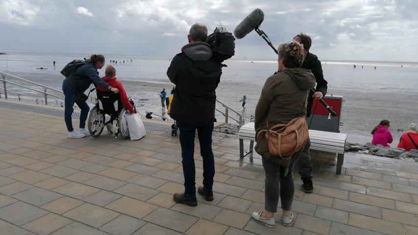 Ein dreiköpfiges Kamerateam des NDR begleitete diese besondere Reise, um zu dokumentieren, wie ein Tag im Leben unserer Wunscherfüller aussieht. Das war nicht nur für Frau K. aufregend, sondern auch für uns! Unsere Wunscherfüller Helmut und Belinda wurden für die Dreharbeiten verkabelt, und wir erhielten Anweisungen von der Redakteurin Verena: "Einfach ganz natürlich sein, nicht direkt in die Kamera schauen usw." - das stellte sich als echte Herausforderung heraus!