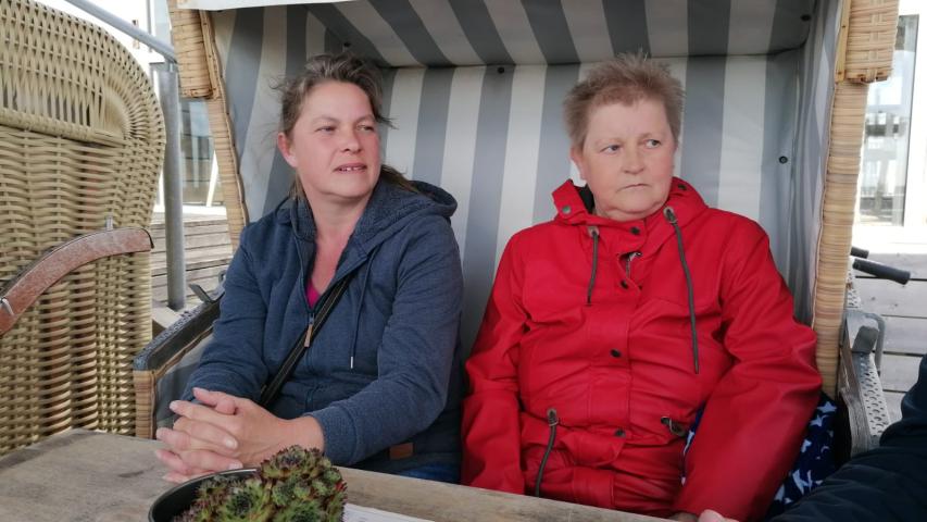 Das Wetter meinte es an diesem Tag gut mit uns, und bis auf eine kleine Ausnahme blieb es sonnig. Die Schwestern genossen ihren Tag im Strandkorb und bei einem gemütlichen Bummel durch die Stadt. Die ungewöhnliche Begleitung durch die Kamera war bald vergessen, und alle bewegten sich völlig frei und ungezwungen vor der Linse.