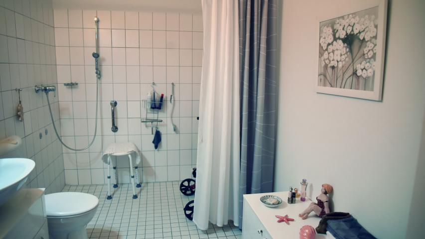 Selbstverständlich befindet sich auch ein Fahrstuhl im Haus. Alle Wohnungen sind behindertengerecht gebaut. Das heißt, es gibt keine Türschwellen, die Türen können auch mit einem Rollstuhl oder Rollator passiert werden und jedes Bad verfügt über eine ebenerdige Dusche.
